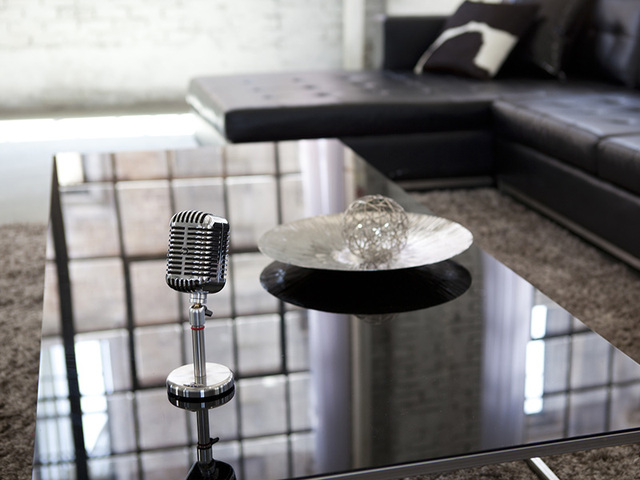 本機は、1950年代のジャズマイクやラジオマイクをモチーフとしたデザインが特徴のBluetoothスピーカー。音質にもこだわっており「低音から高音までバランス良く同時に出せる」という独自開発のエンクロージャーを採用。デスクスタンドは高純度ステンレスを削って作成しており、その重量(1kg)で音質の安定性を保つとともに不要な振動を極限まで抑制するという。