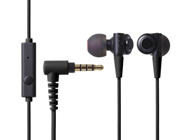 マイク搭載の“Mシリーズ”は、φ3.5mm4極ミニジャックを持つスマートフォンに接続してハンズフリー通話も可能。着信応答/通話終了スイッチを搭載する。手に持たなくても通話しやすい高さにマイク位置を設定したという。