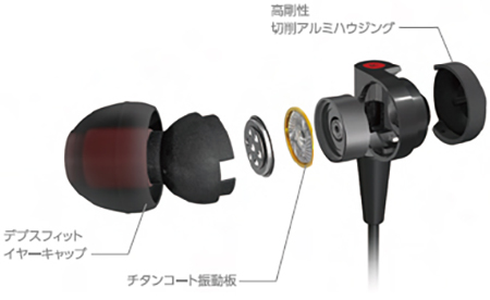 【SPEC】●形式:密閉・ダイナミック型 ●ドライバー:φ8.0mm(チタンコーチ振動板) ●インピーダンス:16Ω ●音圧感度:92dB/mW ●最大許容入力:5mW ●再生周波数帯域:20Hz〜20kHz ●ケーブル長:約1.2m ●プラグ:φ3.5mm4極ステレオミニ ●質量:約4g(ケーブル含まず)