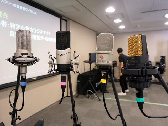 また、放送局やスタジオなどプロの現場で利用されているゼンハイザーやノイマンのマイクなどプロ用機器や、会議用スピーカー/通話システムなどビジネス向け製品など、普段目にすることの少ないものまで幅広く展示される。
