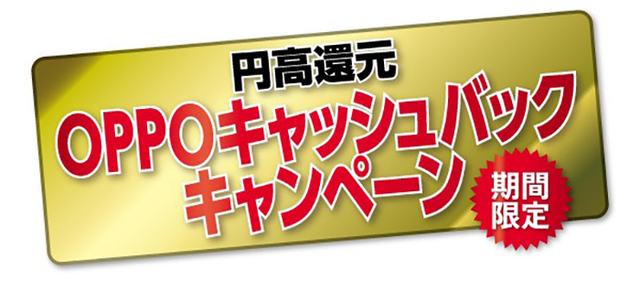 OPPO Digital Japan(株)は,同社製品の購入者を対象に「円高還元OPPOキャッシュバックキャンペーン」を実施している。