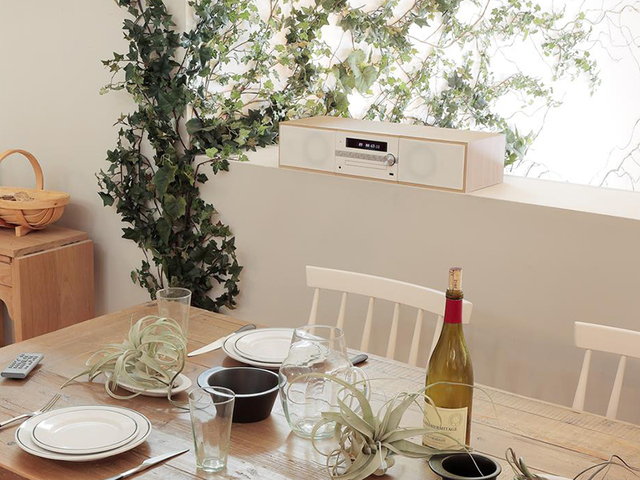 最大出力15W+15Wのアンプと、口径50mmトゥイーターと口径94mmウーファーを搭載した2ウェイスピーカーの組み合わせにより、コンパクトサイズでありながら迫力ある低音と伸びやかな高音を再生するとしている。スピーカーの木目調の面をレシーバー部と合わせてフラットにできる横置きと、省スペースに設置できる縦置きが選べる。