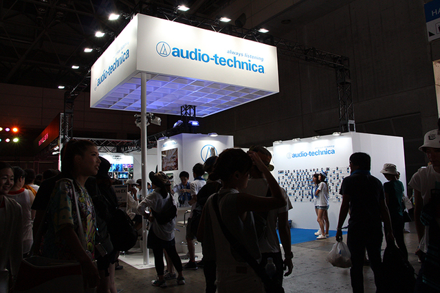オーディオテクニカはオフィシャルスポンサーとして同イベントをサポートしており、2002年からステージ用マイク提供などを行っている。会場内ではSTAGEの天井から吊り下げられたヘッドホン型のオブジェや、メインステージとなる「MARINE STAGE」のスタンド席中央など至る所でフラッグが掲げられ、サマソニに欠かせない存在となっている。ブースの壁面には、これまで提供されてきた歴代使用マイクや今年のステージで使用されているワイヤレスマイクロフォンが展示されていた。