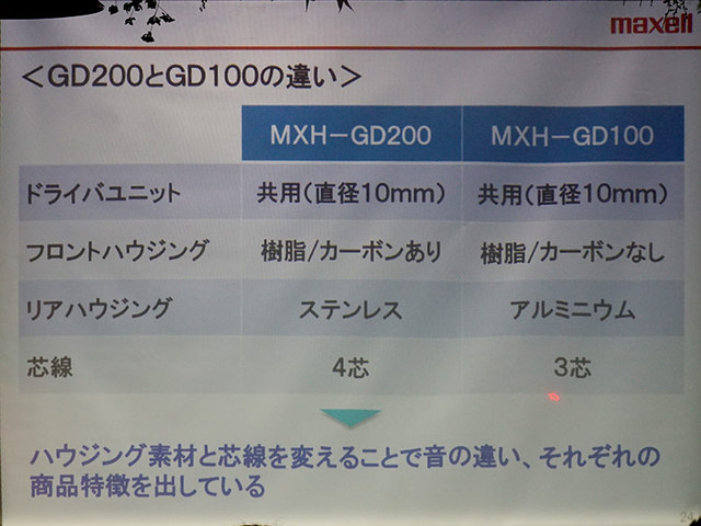 日立マクセルは、ダイヤモンド以上の硬度を持つグラフェンコート振動板を業界で初めて採用した新開発ドライバーを搭載し、ハイレゾ領域の周波数帯域再生にも対応したイヤホン“Graphene”「MXH-GD200」「MXH-GD100」について、メディア向け説明会を開催。製品の特徴や開発の狙いを開発者らが語った。