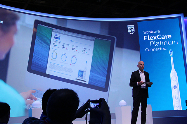 そのほかプレスカンファレンスでは、人々の健康をサポートする「Philips HealthSuite」などについて発表。電動歯ブラシの新モデル「Sonicare FlexCare Platinum Connected」は、歯ブラシ部にカメラを内蔵し、磨き残しの有無をアプリでチェックできるというユニークなもの。取得データは歯科医と共有して口内環境を健やかに保つ助けとすることができるという。
