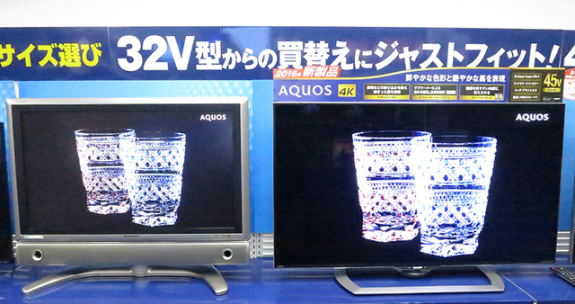 これまでに60/55/50型の3サイズをラインナップしており、ここに45型が加わる形となる(関連ニュース)。シャープでは「32型テレビからの買替えに最適なサイズ」とアピールしている。