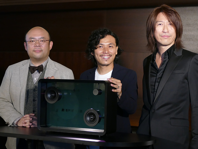 (株)SIXは、音楽と同期して筐体に歌詞が表示されるIoTスピーカー「Lyric speaker」の完成披露記者発表会を、東京・伊勢丹新宿店メンズ館にて開催。ゲストにロックバンド・GLAYのTAKURO氏も登壇し、開発者らとのトークセッションを行った。