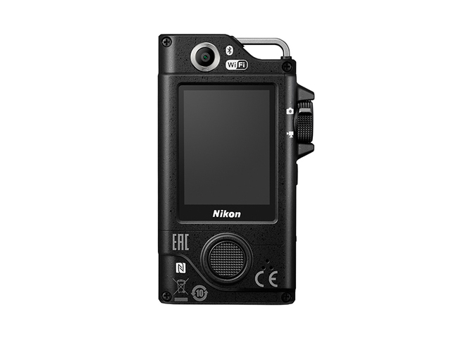 KeyMission 80は、付属のカメラホルダーから取り外すと自動で電源がオンになり、片手で素早く撮影できるモデル。KeyMission 360/170にも採用されているNIKKORレンズを搭載するメインカメラのほかに、有効画素数約492万画素のサブカメラを備え、自撮りにも対応する。本体カラーはブラック、シルバーの2色を用意。