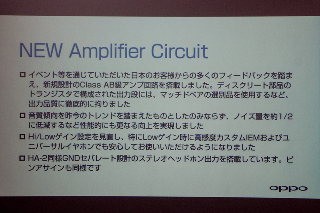 このノイズ低減は当然音質に現れるが、別の側面として、高感度のイヤホンと本機を組み合わせた際のノイズの拾いやすさも大きく改善したという。
