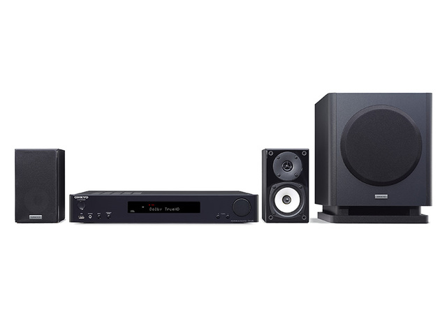 BASE-V60は、上述の薄型AVアンプ TX-L50に、テレビ周りに設置しやすいコンパクトな2chスピーカーとサブウーファーを組み合わせたパッケージ。フロントスピーカーは幅10cmほどのコンパクトなサイズで、80kHzまでの高域をカバーするトゥイーター部と、独自開発のN-OMF振動板を採用したウーファー部による2ウェイ構成としている。サブウーファーは、オンキヨー独自のOMF振動板を採用し、大容量キャビネットと炬形ダクトによりAERO ACOUSTIC DRIVEを投入している。