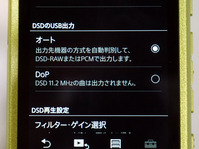 新たにDSD音源の再生に対応。最大11.2MHz DSDを、176.4kHz/32bit PCMに変換して再生する。なお、PCMのハイレゾ音源は192kHz/32bitにまで対応している。