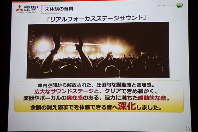 三菱電機は、同社DIATONEブランドの車載用スピーカーやカーナビの新製品説明会を開催。ハイレゾ対応のオーディオ&カーナビゲーションシステム“DIATONE SOUND NAVI”「NR-MZ200」シリーズ2機種を10月27日より順次発売する。