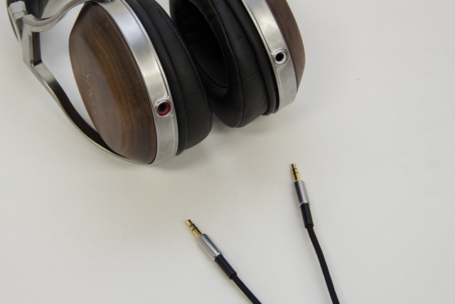 ケーブルは左右両出しの着脱式で、左右のプラグには3.5mmモノラルミニプラグを採用。導体には、7N(99.99999%)純度のOFXC(無酸素銅)を採用する。また、断線を防ぎつつタッチノイズを低減するために布巻きを施している。プラグ部には削り出しのアルミスリーブを用いて、こちらも耐久性を向上させた。