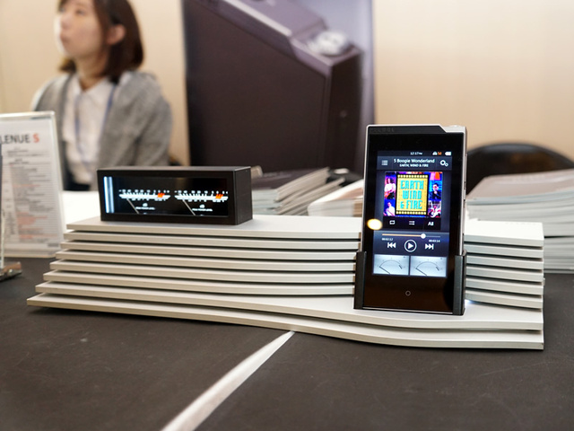 もちろんフラグシップである11.2MHz DSD対応モデル「PLENUE S」も展示。充電、ファイル転送、外部オーディオ機器への音声出力等が行える専用クレードル「PLENUE-BASE STATION」とともに披露されていた。