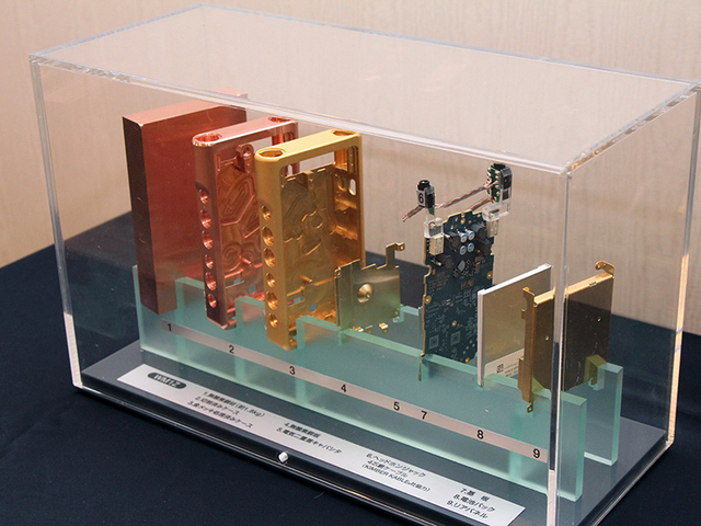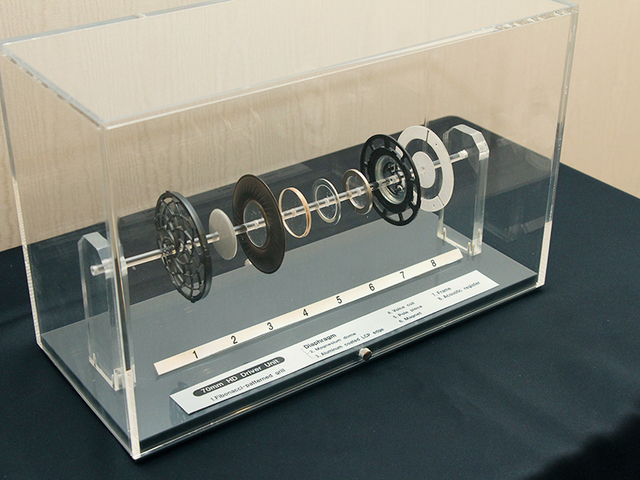 VECLOSのブースでは、サーモスが培った魔法びんの真空技術を応用したスピーカー「SSA-40S」を展示している。