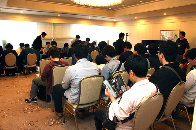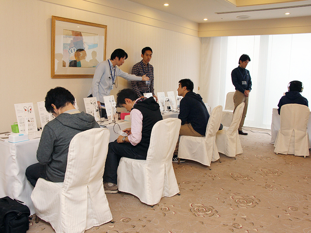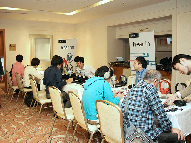 同ブースには8席分の試聴機が用意されていたが、会場のオープンと共に多くの人々が訪れ、満席に。部屋の半分ほどのスペースには順番待ち用のいすが置かれていたが、そちらも満席状態になるなど、その注目度の高さがよく分かる。