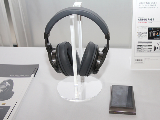 なかでも注目を集めていたのは、aptX HDに対応した「ATH-DSR9BT」「ATH-DSR7BT」。aptX HDは24bitの音声をBluetoothでワイヤレス伝送できるコーデックで、Bluetoothでも高音質で音楽を楽しむことができる。Astell & KernのAK70やAK300シリーズなどがファームウェアでaptX HDに対応したため、これらの機種とワイヤレス接続で24bitサウンドを楽しめる。また本機は、USBによる有線接続にも対応しており、PCとつなげば最高96kHz/24bitまでのハイレゾ音源を再生可能だ。