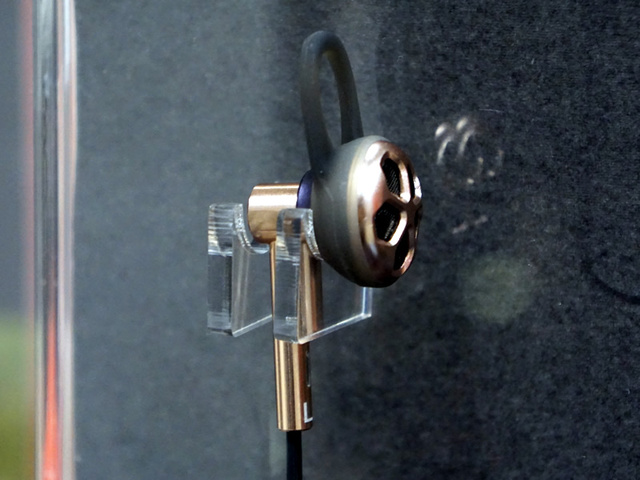 DUNUは、3BA+1ダイナミックという計4基のドライバーを搭載した「DK-3001」を参考展示。新ライン「DKシリーズ」の第一弾のハイレゾ対応モデルで、再生周波数帯域は5Hz〜40kHz。汎用MMCXプラグでのリケーブルに対応し、通常のアンバランスケーブルに加えて2.5mmバランスケーブルも付属する予定。12月初めに55,000〜5,6000円程度での発売を予定しているとのことだった。