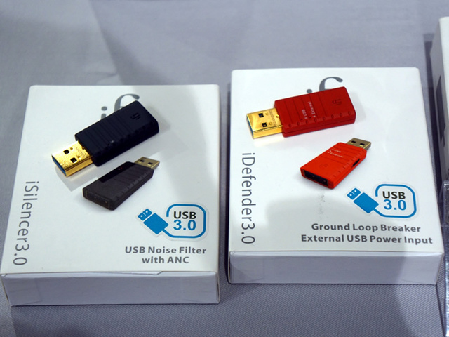 また、iFI-AUDIOはUSBノイズフィルター「iSilencer3.0」とグランドループブレーカー「iDefender3.0」を参考展示。どちらも「1万円はしないだろう。7,000円程度になるのではないか」とのことで、両者を組み合わせて利用することもできるという。