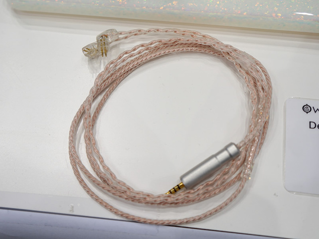 WAGNUS.はリケーブル「Development Flagship Cable,Code#3」を参考出展。こちらはNOBLE AUDIOの最上位カスタムIEM「Katana」にバンドルしているもので、単品売りはまだ行っていないため参考出展扱いでの展示だった。