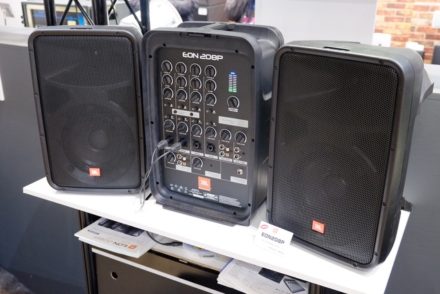 JBL PROFESSIONALブランドはアクティブスピーカーを多数展示しており、人気モデル「LSR305」や 新製品となるポータブルPAシステム「EON208P」などによるデモが行われていた。またヒビノインターサウンドが取り扱うMUTECブランドから、高性能なUSB対応マスタークロックジェネレーターとしてオーディオファンからも関心の高い「MC-3+USB」が展示された。