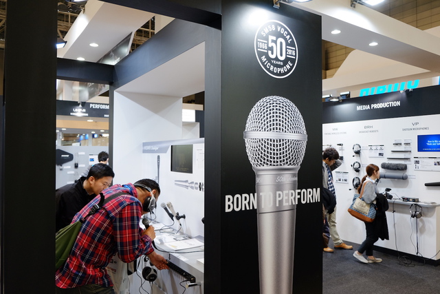 シュアのブースでは、カーディオイドダイナミック型マイク「SM58」が50周年を迎えたことを記念し、専用のスペースを用意。その系譜となる最新モデル「KSM8」の展示や、同社ダイナミック型マイクの歴史が記された資料などが配布された。