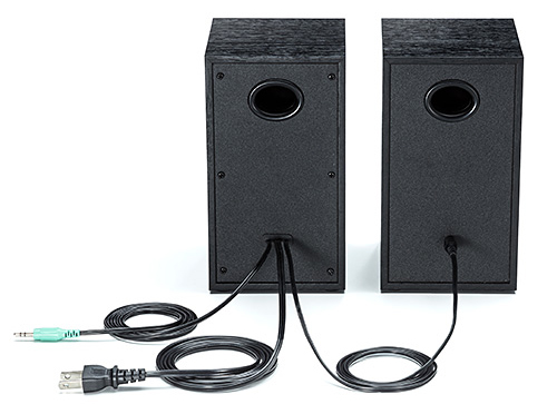 入力はアナログのみで、3.5mmステレオミニ入力から音声を入力する。左右のスピーカー間は、約1.5mのアナログオーディオケーブルで接続する。このため約40インチ程度のテレビやモニターの左右に置くことができると同社では説明している。