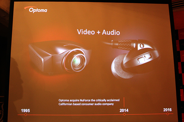 プロジェクターなどを手がけるOptomaは、2014年にNuForceを買収(関連ニュース)。以降、映像とサウンド両方を持つメーカーとして、両ブランドの強みを持ち寄りながら製品づくりを行っているという。今回、OptomaとNuForceのキーマンが来日し、戦略説明会が開かれた。