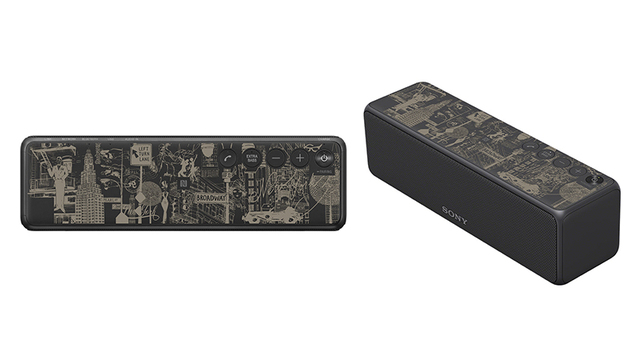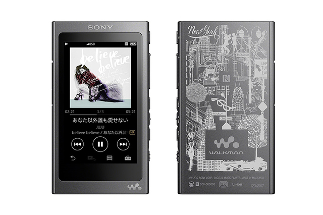 それぞれウォークマン背面、ヘッドホンのハウジング部、スピーカー天面に、JUJUが長年過ごしたニューヨークの風景をモチーフにしたオリジナルデザインがプリント。オリジナルパッケージにて配送される。カラーはチャコールブラック。