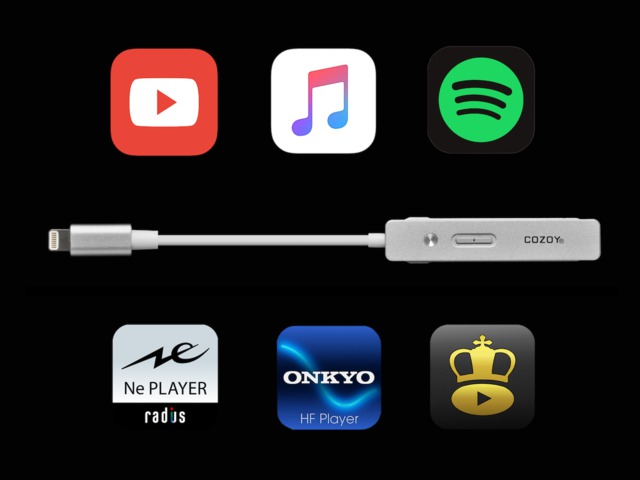 アプリはiOS標準のMUSICアプリだけでなく、動画再生アプリやハイレゾ対応の音楽再生アプリなどのサードパーティ製アプリにも対応可能。