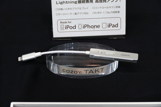 TAKTは、Lightning端子を搭載した小型のアンプ。12月22日発売で価格はオープンだが、16,500円前後での実売が予想される。iPhoneやiPad、iPod touchのLightning端子に差し込むだけで使用できる。質量11.5gと小型・軽量な本体にはコントロールボタンを搭載。バスパワーで駆動する。