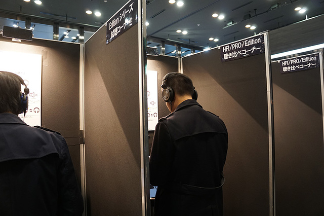 またブースの中に入ると、いくつかに間仕切りされた試聴コーナーが設けられている。1Fはどうしてもアンビエントノイズがあるため、少しでも良い環境で音を聞いてもらうため、こういった工夫を行ったという。