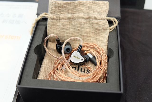 サイラスのブースでは、Oriolusブランドから本日17日発売となるイヤホン「Forsteni」(42,800円/税込)が展示。実際に試聴することができた。本機はBAドライバー2基、ダイナミックドライバー1基の3ドライバーによるハイブリッド構成で、ケーブルには「Oriolus 2nd Gen.」用に開発された「PW AUDIO」のThe No.5を使用。銅線は7N OCC連続単結晶リッツ線を採用する。