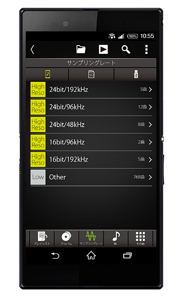 楽曲はスマホ本体のメモリ/SDカード/外部USBストレージに保存したものを再生可能。それぞれ独立して表示できるので、保存先を混同することもないという。また、アプリ内でファイルのコピーや削除も行える。