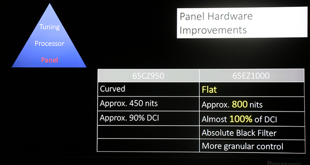 有機ELパネルは、前世代モデル「CZ950」に搭載したものに比べて大きく進化。まずピーク輝度を従来モデルの有機ELパネルに比べ2倍に高め、さらにDCI色域をほぼフルカバーすることが可能で、HDR映像を高品位に再現できる。