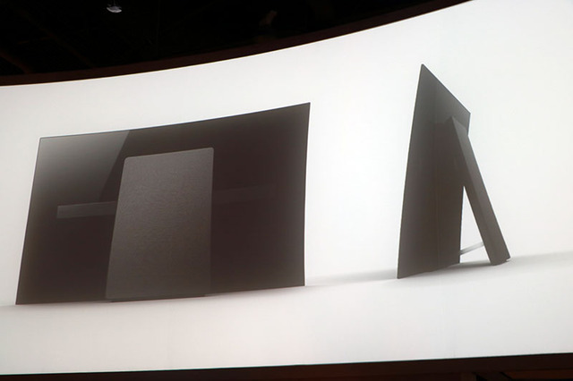まだ北米での発売時期や価格も未定の製品で、くわしいスペックなども公開されていない。サイズは77/65/55型の3サイズを展開する予定。会場には77型と65型の2サイズが置かれていた。なお、日本での導入についても検討しているという。