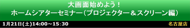 アバック名古屋店は、初めてプロジェクターやスクリーンの導入を検討しているユーザーに向けたホームシアターセミナーを、1月21日(土)に開催する。セミナーは定員10名の予約制となっている。