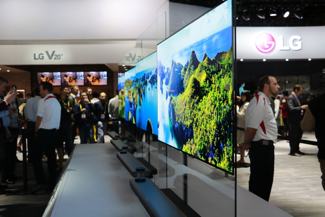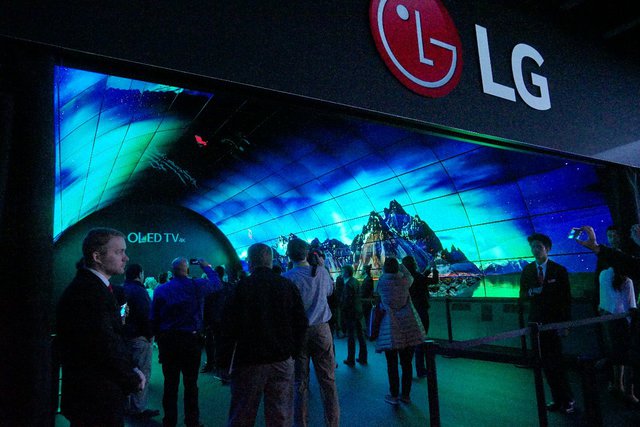 韓国LG電子はCES2017にブースを出展し、多数の来場者を集めていた(関連ニュース)。まず、来場者を迎えるのは同社のカーブドOLEDパネルを216枚使って作られたトンネル。まさしく夜空に輝くオーロラのようだ。