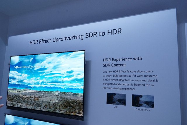 「LG OLED TV W」を用いたHDR関連のデモも行われている。一つは「ドルビービジョン」「HDR10」「HLG」に加えて、フィリップスやテクニカラーが提案している「テクニカラー」方式でのHDR信号にも対応したことを表すデモ。プレスカンファレンスでLGとテクニカラー社のパートナーシップも発表されたが、LGとしては全世界で用いられるHDR信号方式をカバーするという立場だ。もう一つはSDRからHDRへのアップコンバートで、こちらでもHDRらしい映像を表現できていることを確認できた。