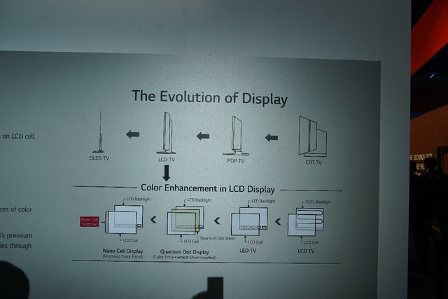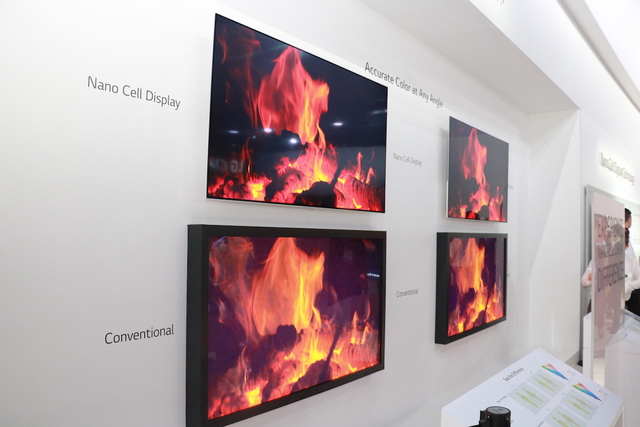 LGブースでは、同社の展開するIPS液晶テレビを高画質化する技術の展示として「Nano Cell Display」の紹介が行われた。