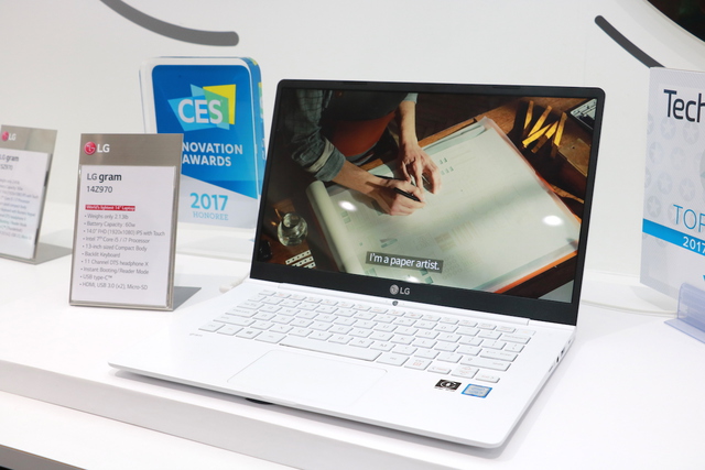 また軽量モバイルノート「gram」も新モデルを展示。15.6型、14型、そして13型がラインナップされ、その全てでフルHD対応IPSタッチパネル液晶を採用。その上で実現した軽量性をアピールしていた。