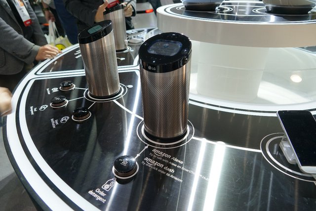 もう一つ、関連する出展としたAmazonの提供するクラウド型AIサービス「Alexa」に対応したスピーカーも出展していた。プレスカンファレンスで発表された、「Alexa」に対応した冷蔵庫も、同機能の動作デモこそなかったが実機が置かれていた。