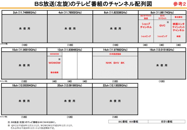 4K/8K実用放送、2018年12月1日から開始。チャンネル割り当ても発表