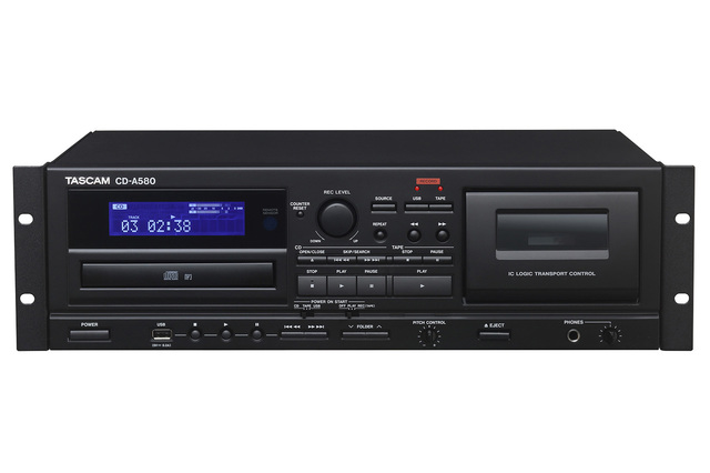 ティアックは同日、TASCAMブランドの業務用のカセットレコーダー/CDプレーヤー/USBメモリーレコーダー「CD-A580」を発表。3月下旬より発売する。価格は60,000円(税抜)。
