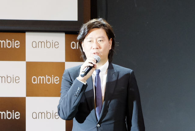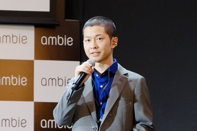 ambieは本日、媒体に向けて製品発表会を開催。ambie 代表取締役 松本真尚氏が会社概要を、開発責任者の三原良太氏が製品概要を解説した。