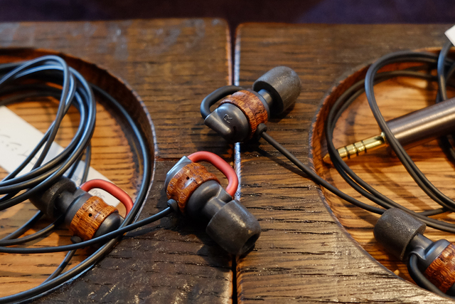音茶楽のブースでは、2月24日から発売の「Flat4-欅」シリーズのφ4.4mmバランス対応モデルである「Flat4-欅Balance(KEYAKI Balance)」と「Flat4-緋欅Balance (AKAKEYAKI Balance )」を展示(関連ニュース)。