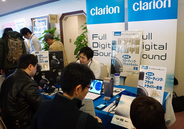 クラリオンブースは、フローティング・フラットドライバーを搭載したフルデジタルヘッドホン「ZH700FF」を展示。Dnoteによるデジタル伝送だけでなく、エッジやダンパーが不要な、独自のドライバーユニットも搭載した意欲作となっている。