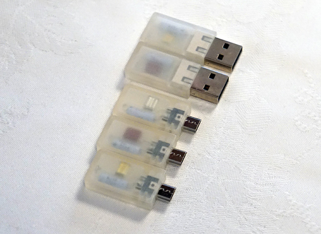 また、USB端子に挿して音質向上を行うアクセサリーも出展。通常のUSB-A端子用のものと、microUSB端子用のものがあり、それぞれ内部に使用しているパーツが異なる3タイプを用意していた。いまのところ発売予定はないという。