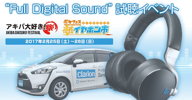 そのほか、クラリオンの車載用Full Digital Soundシステムデモカーが用意され、実際に試聴ができるコーナーも設置。試聴後にアンケートに回答すると、クラリオンオリジナルグッズがプレゼントされる。