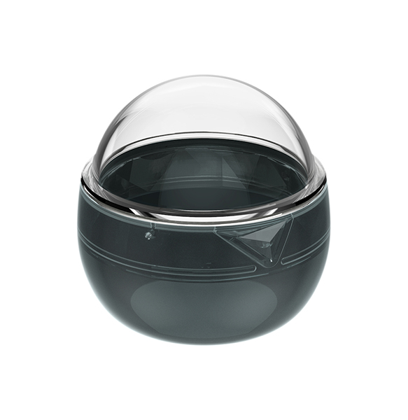 「ダイブハウジング」は、360flyシリーズ専用の水中撮影用ハウジング。本製品を装着することで360flyシリーズがもともと備える防水性能を超える、水深40mまでの水中撮影を可能にする。また、360flyシリーズに装着したまま、本体のワンプッシュボタンで三脚に取り付けることもできる。